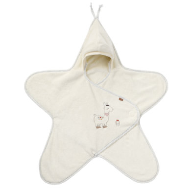 Kuschelige Babydecke mit Klettverschluss für Kinderwagen, Babytrage, Autositz, Babybett. Für Babys von 0-6 Monaten geeignet. Die flauschige Einschlagdecke Lama aus der Peru Kollektion ist der perfekte Begleiter für Zuhause und unterwegs. Als Einschlagdecke in Autositz, Babyschale und Kinderwagen oder als Kuscheldecke in Wiege und Babybett – dein Baby ist in jeder Situation sicher, schnell und einfach eingewickelt ohne sich dabei freistrampeln zu können. Die Babydecke ist kuschelweich und bequem für dein Baby. Die praktische Kapuze schützt den Kopf und die Ohren. Ohne Gurtschlitze, passend für alle Babyschalen und Autositze. Ideal als Geschenk zur Geburt, Taufe oder als Geburtstagsgeschenk geeignet. Produktdetails: Obermaterial: Plüsch (100 % Polyester) Paspel: Druckstoff (65% Polyester, 35% Baumwolle) Strickbündchen: 95% Baumwolle, 5 % Elasthan Waschbar bei 30 °C