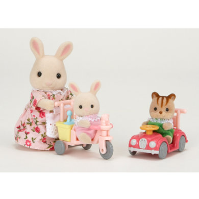 Sylvanian Families ist eine einzigartige und bezaubernde Auswahl von einzigartigen Tierfiguren mit entzückenden und wunderschönen Häusern, Einrichtungsgegenständen und Zubehör. Sie leben, arbeiten und spielen im idyllischen und wundervollen Sylvanian Village. Mit Dreirad und Rutschauto geht es ab an die frische Luft. Mama kommt kaum hinterher, so schnell flitzen die Kleinen davon. Mutter und 2 Babys sind im Set enthalten. Details: Figurengröße ca. 6-8 cm Alter: ab 3 Jahren Achtung Nicht für Kinder unter drei Jahren geeignet. Enthält Kleinteile, die verschluckt werden können. Erstickungsgefahr!